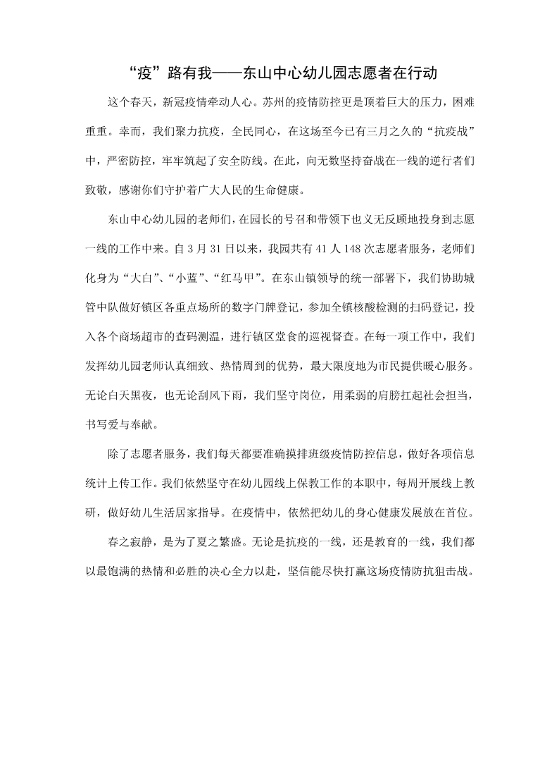 “疫”路有我——东山中心幼儿园志愿者在行动