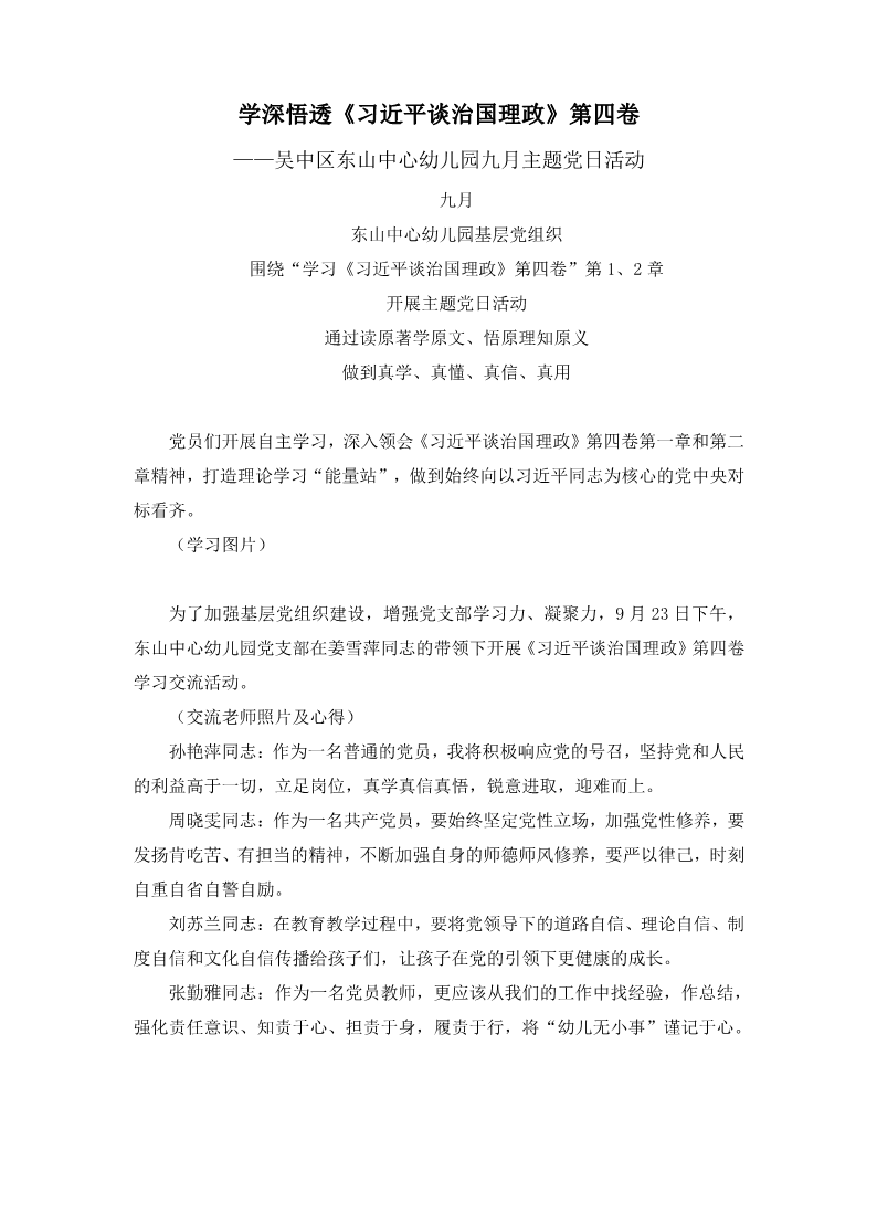 学深悟透《习近平谈治国理政》第四卷 ——吴中区东山中心幼儿园九月主题党日活动